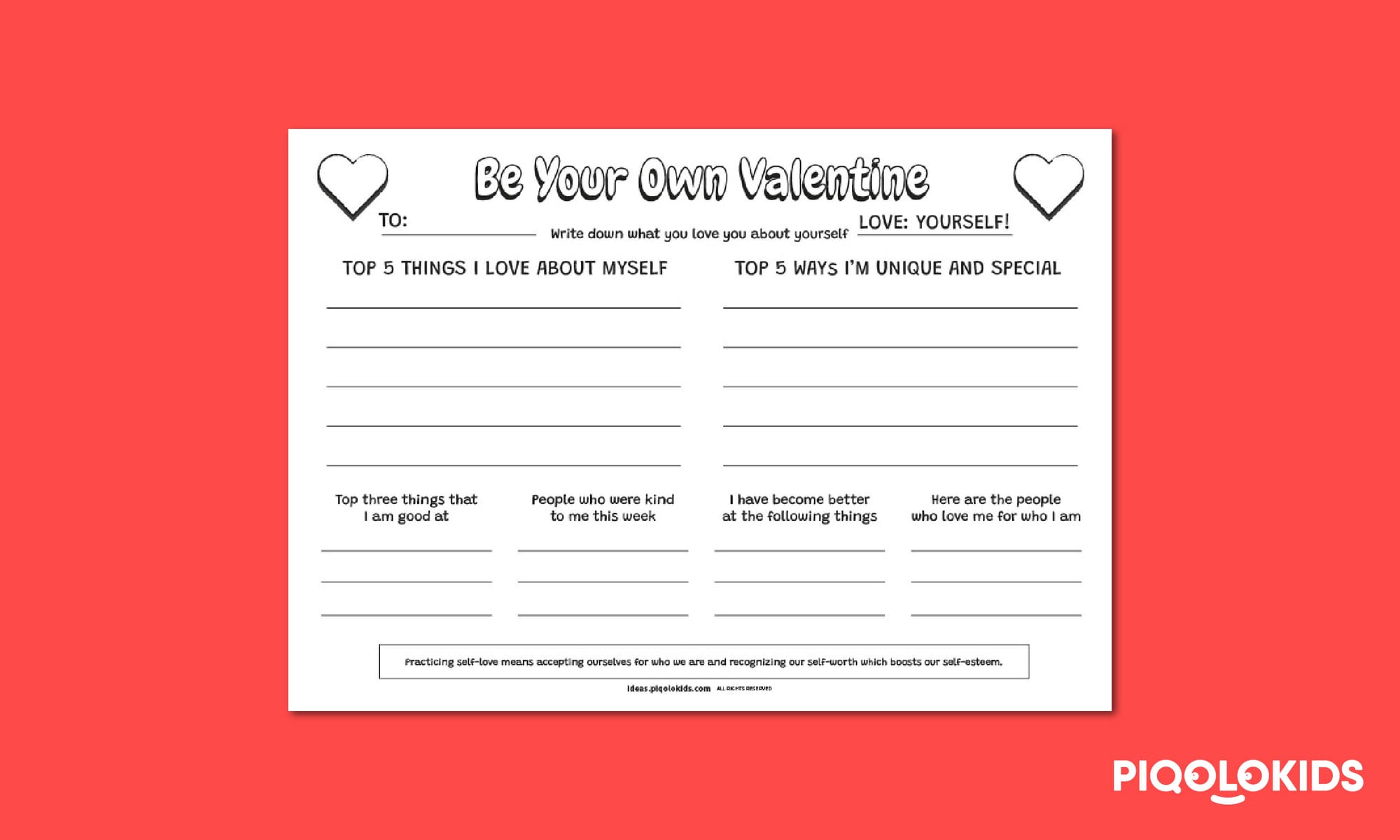 This printable activity is designed to help students foster self-love and cultivate an environment in the classroom where each individual feels cherished, valued and empowered to embrace their own unique worth.