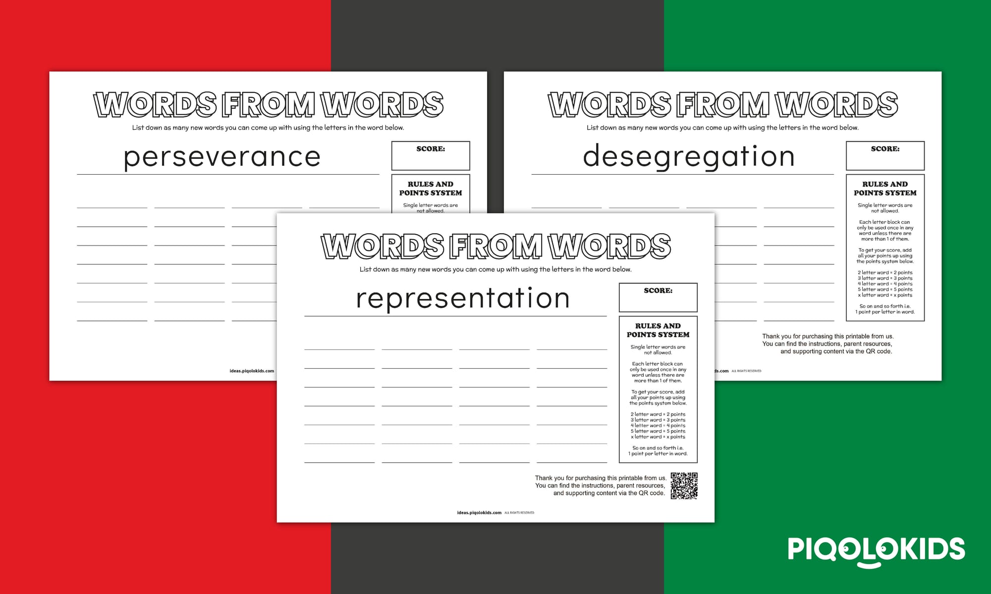 - Words from Words: Vocabulary Game - BHM Edition (3 pages)