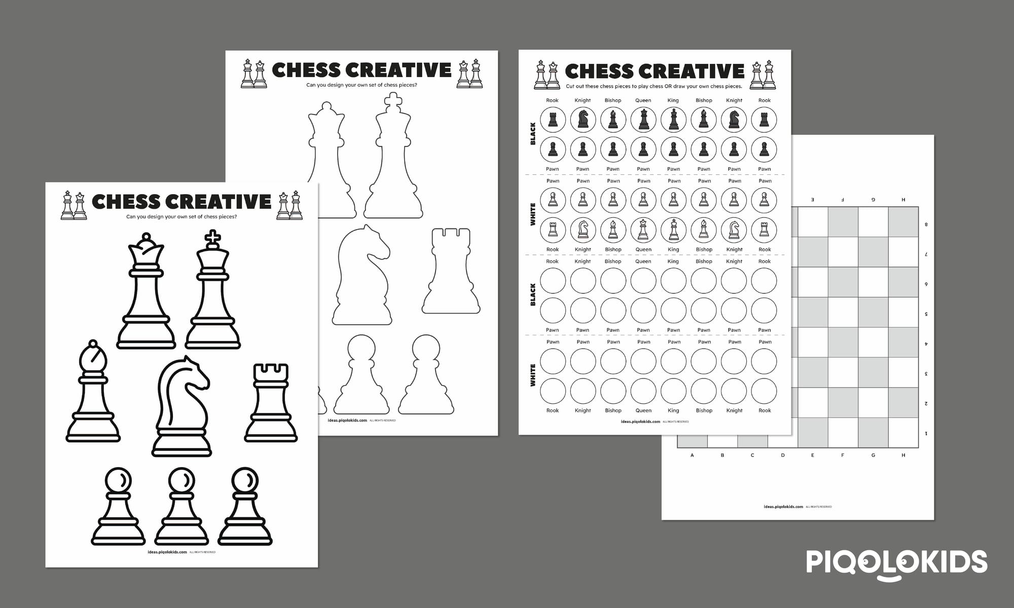 This printable creative activity helps elementary students explore the world of chess through designing and colouring their own chess pieces, fostering creativity and introductory understanding of the game's intricacies.