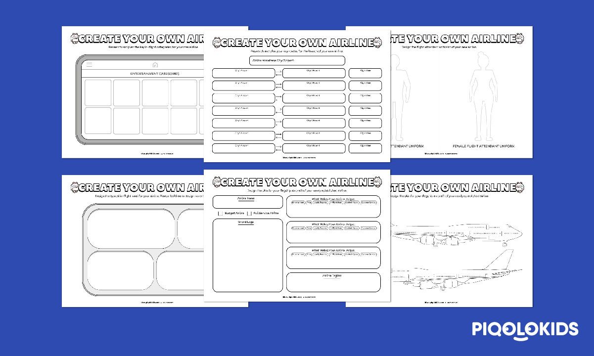 This printable creative design challenge consists of 6 printable worksheets for your students or children to create their new airline. Here's what it consists of: