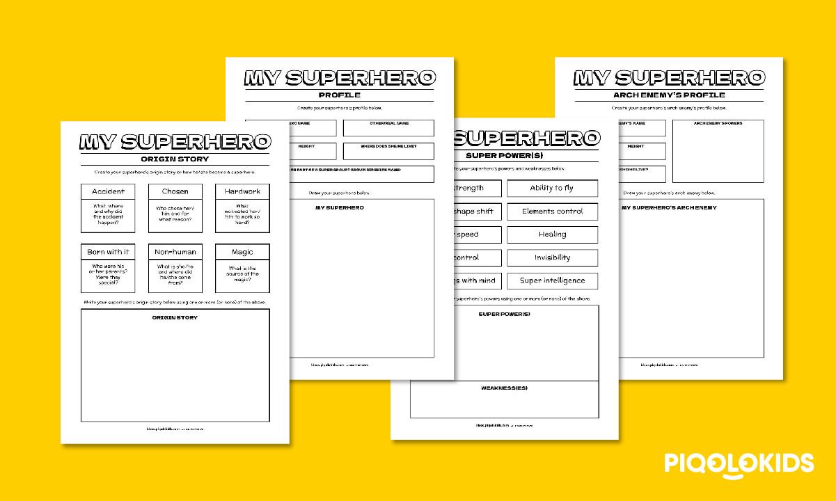 This printable pack consists of 4 printable activity worksheets for your kid/student to conceptualise and design their first superhero.