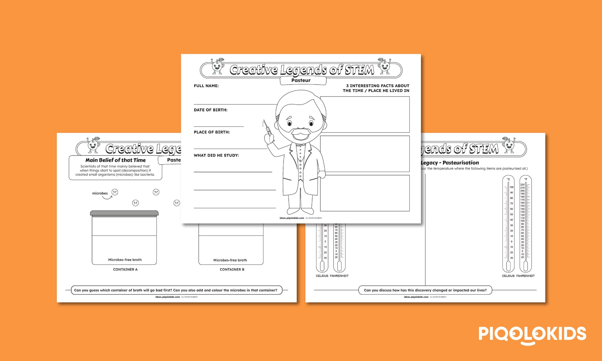 In this creative printable activity, elementary students will explore the life and work of Louis Pasteur and his namesake process of Pasteurisation through research tasks and expressive colouring, blending STEM with art.