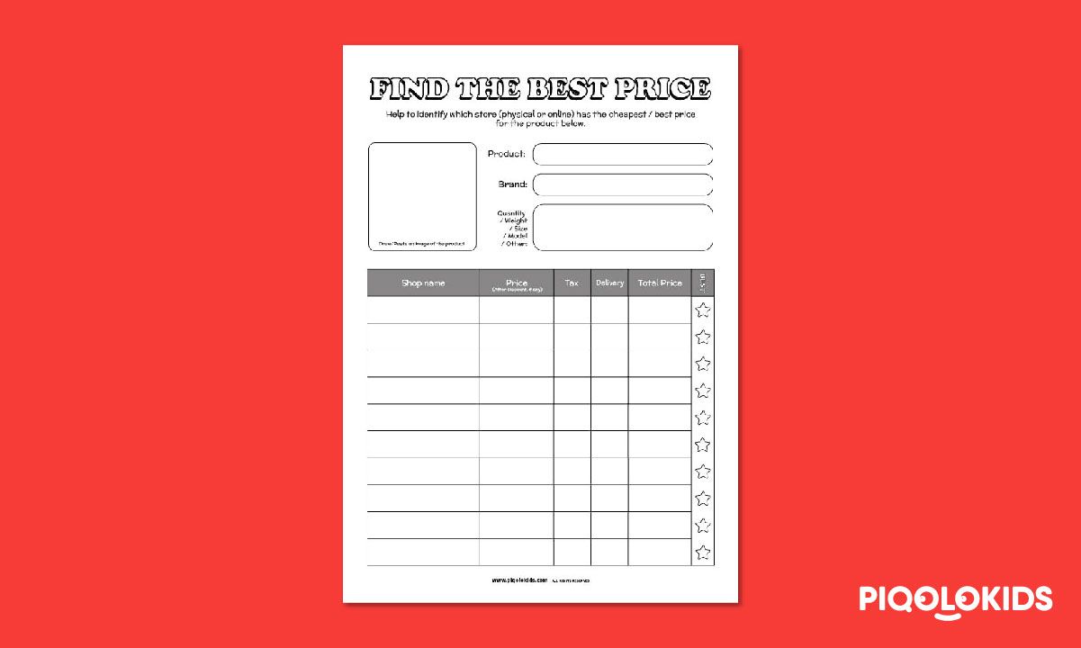 This printable pack consists of 1 printable worksheet for your student/child to record down the price differences between 10 different retail outlets/stores.