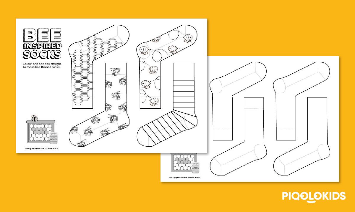 This printable pack consists of 2 printable creative design worksheets for your child or student to design "bee inspired" socks. There is a pre-designed sheet for colouring and an empty template for more creative expression.