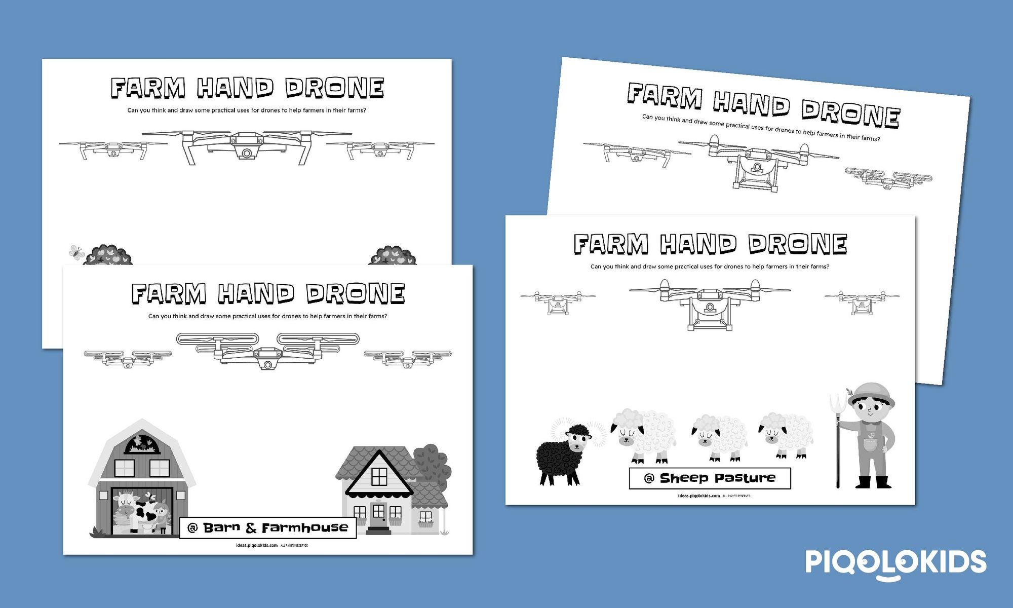 3 Farm Drone Design Sheets with Prompts