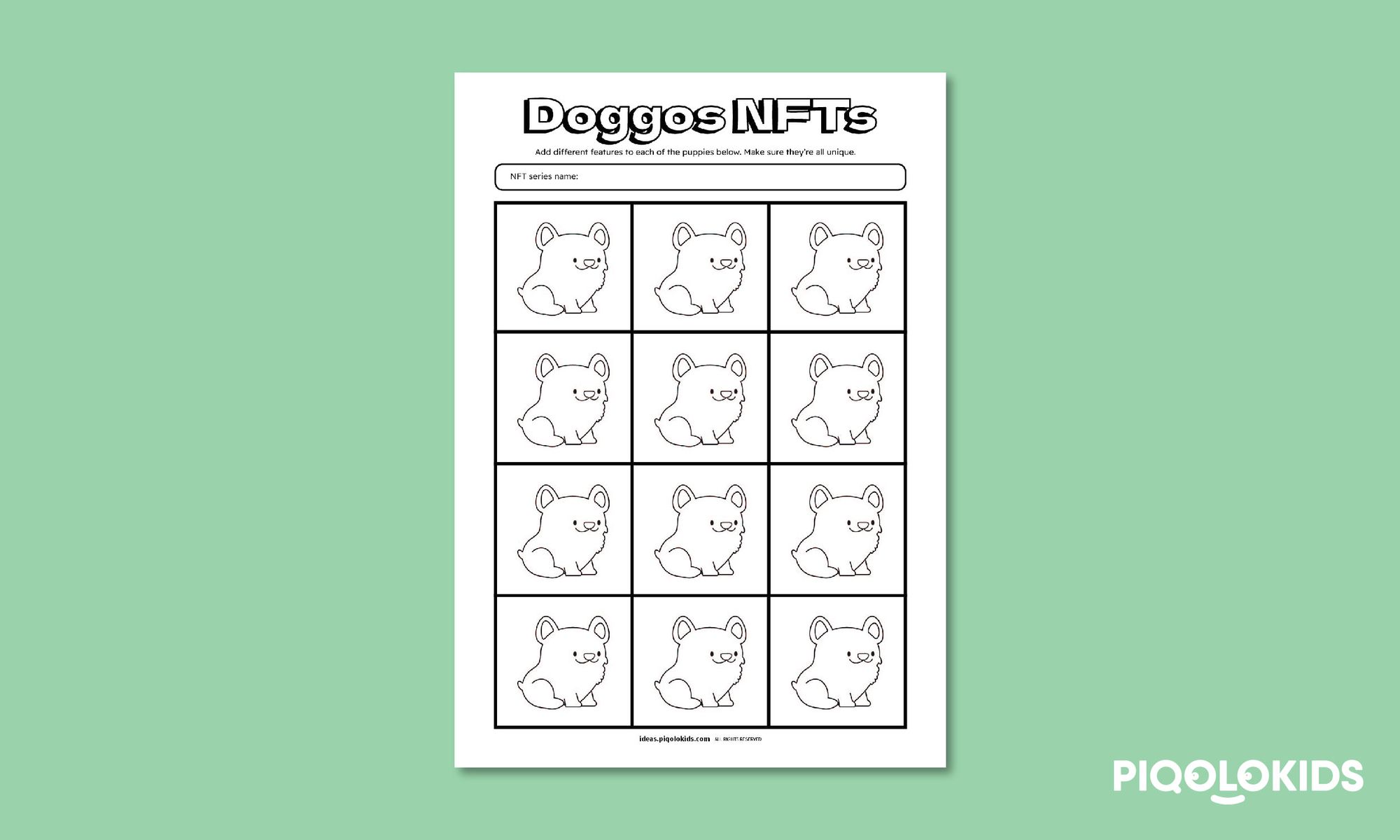 In this activity, your child will learn about NFTs (non-fungible tokens) and have a chance to design the concept art on a printable for a potential simple NFT series.