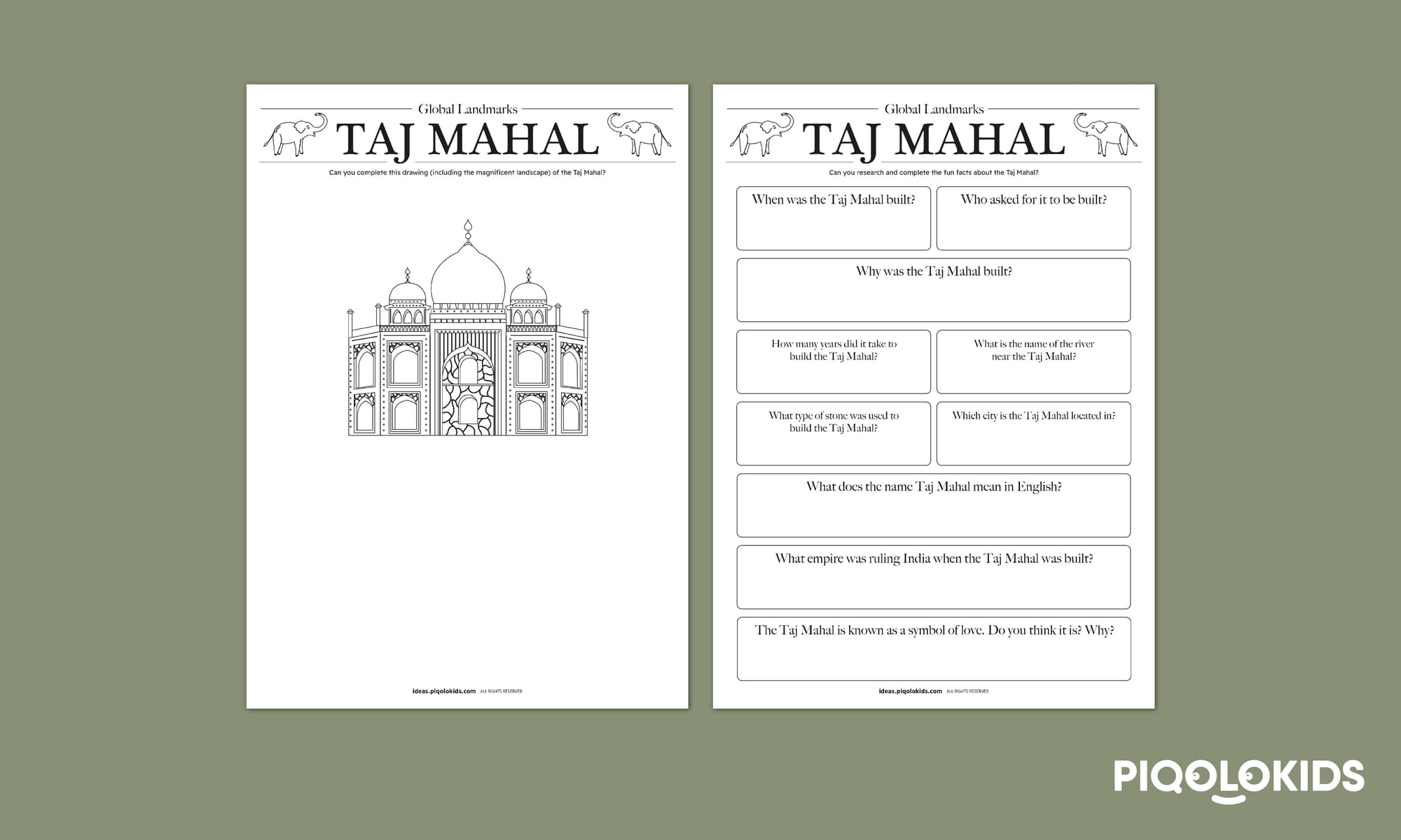 - Global Landmarks: Taj Mahal (2 pages)