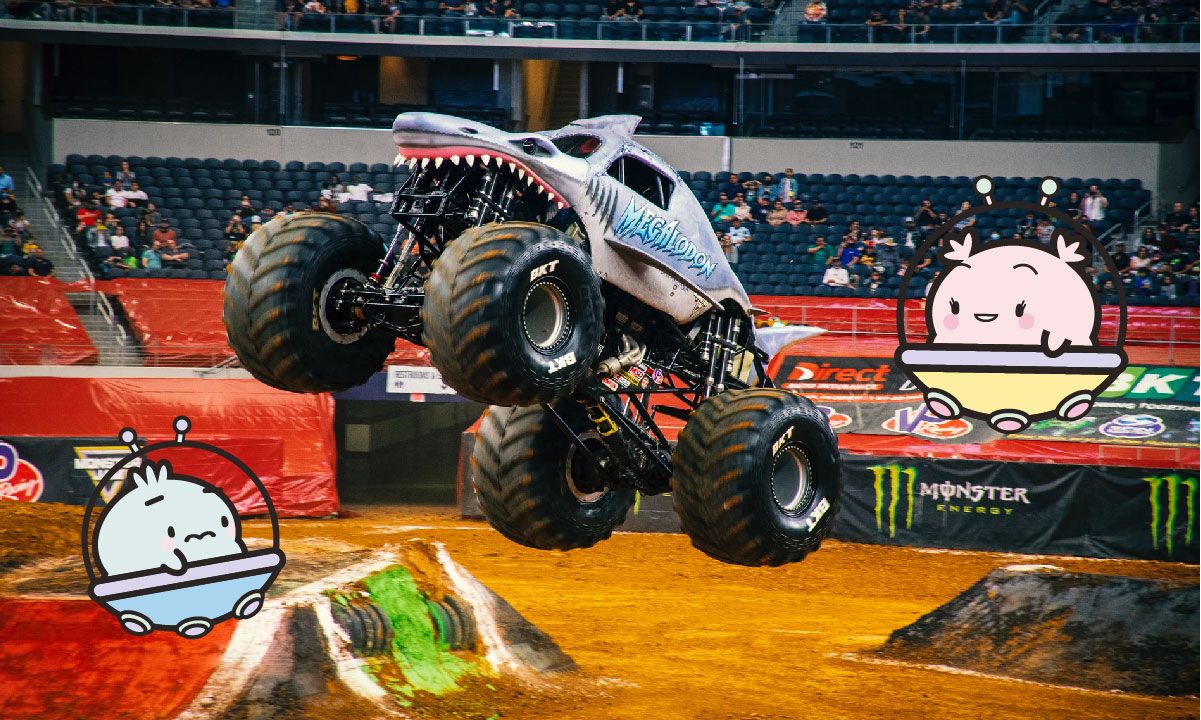 What's 12 feet tall, weighs 12,000 pounds, can jump over a few dozen feet up in the air and growls like an absolute beast? You guessed it... A big mean monster truck! These heavily modified pick-up trucks with ginormous tires entertain arenas packed with excited spectators by jumping over ramps and smashing cars beneath them! Each monster truck is unique and have their own fan base.