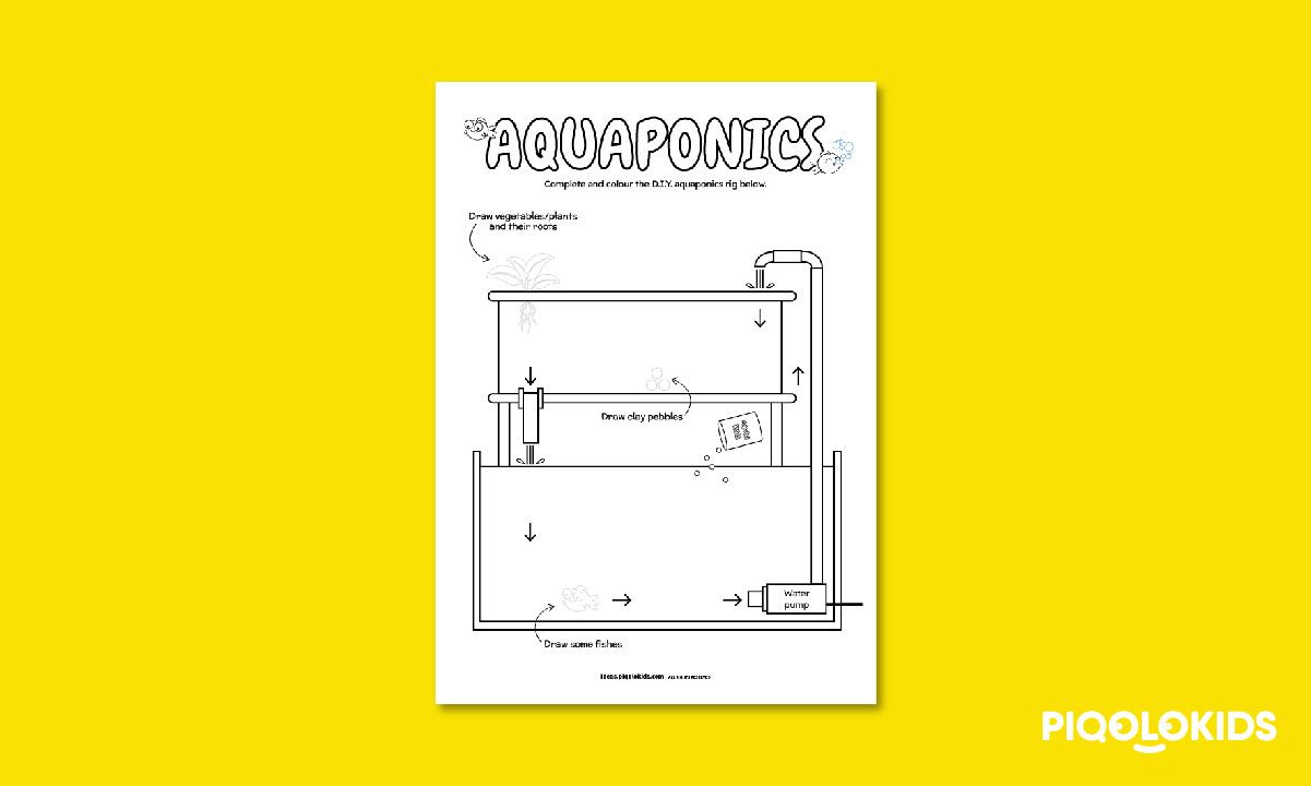 In this activity, your child will learn about the water and nutrient cycle in an aquaponic system by drawing and colouring the various components of a simple D.I.Y. aquaponics rig.