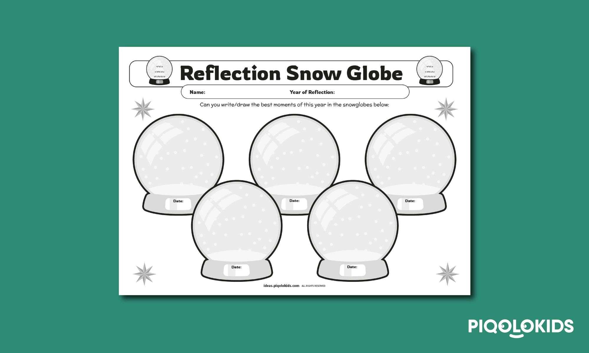 1 End of the Year Reflection Snow Globe Sheet