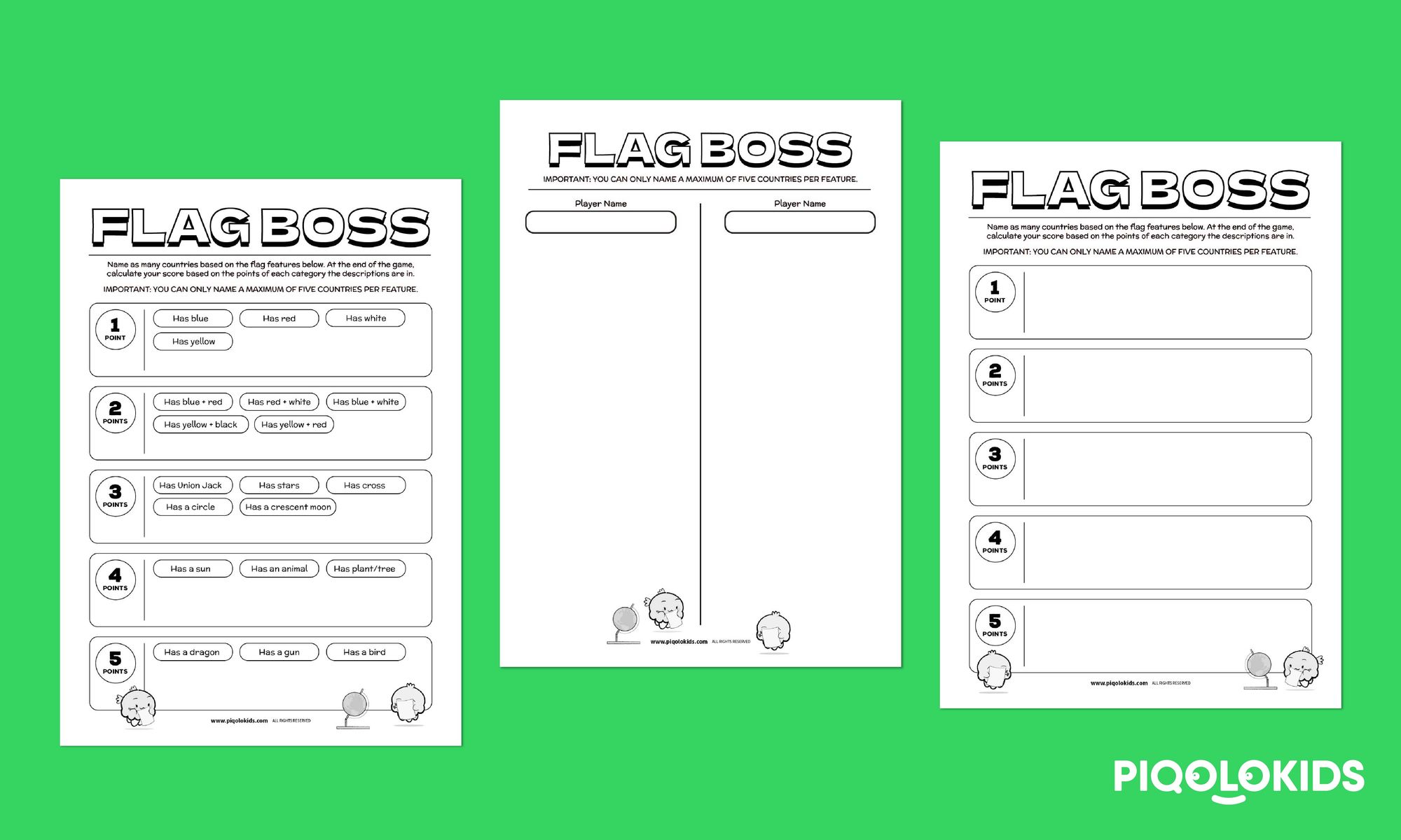 1 printable country flag game category sheet (open template for teachers/students to write their own categories).