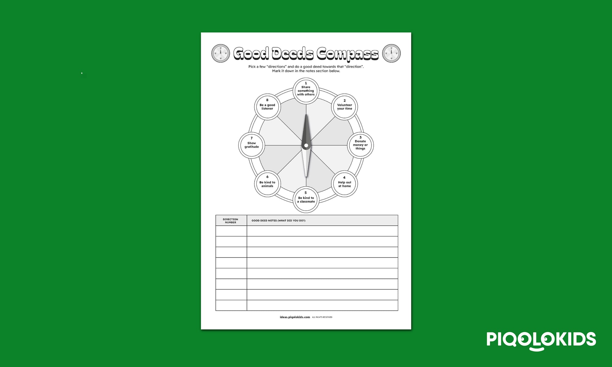 1 Printable Good Deeds Compass and Notes Sheet