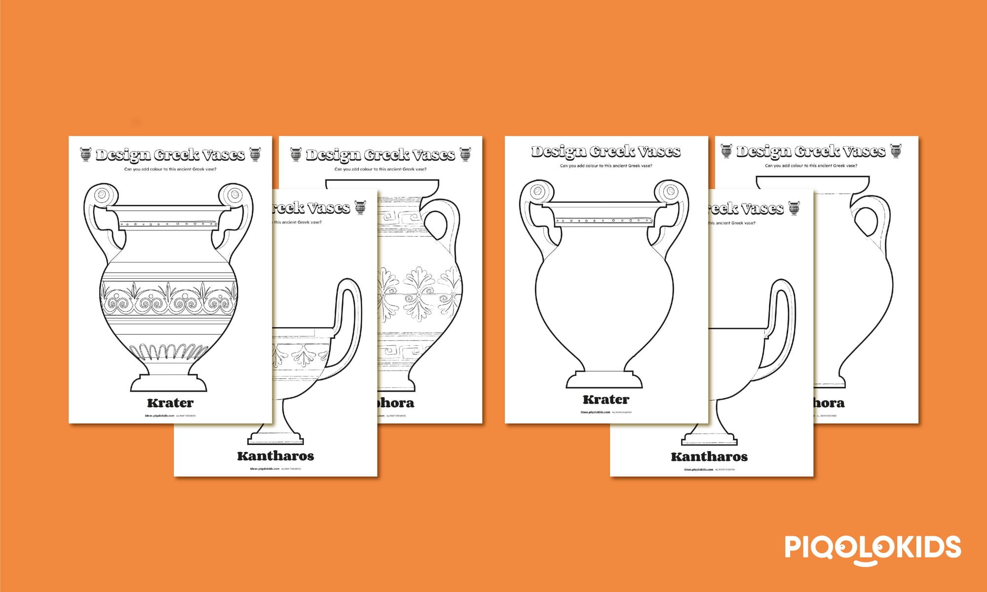 3 Printable Pre-designed Greek Pottery Sheets