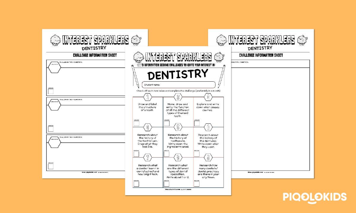 This printable project based learning (PBL) pack consists of 3 printable worksheets for your students or children to spark their interest in Dentistry. Here's what it consists of: