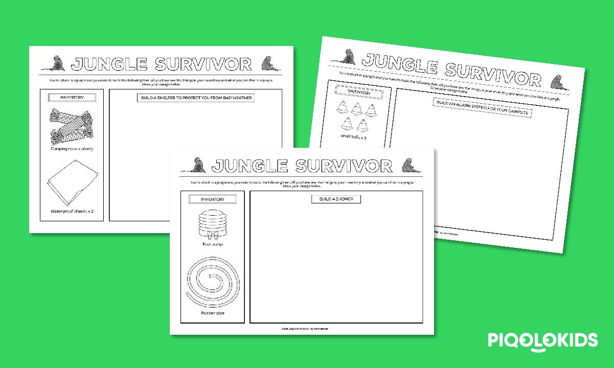 This printable pack consists of 3 printable design challenges. These printable worksheets have different design challenges related to jungle survival. Let your child's imagination run wild!