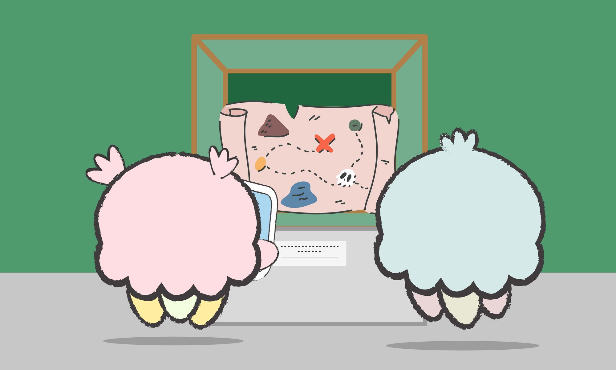 Show examples of treasure maps or scenes from "The Goonies" movie to inspire students' creativity and imagination.