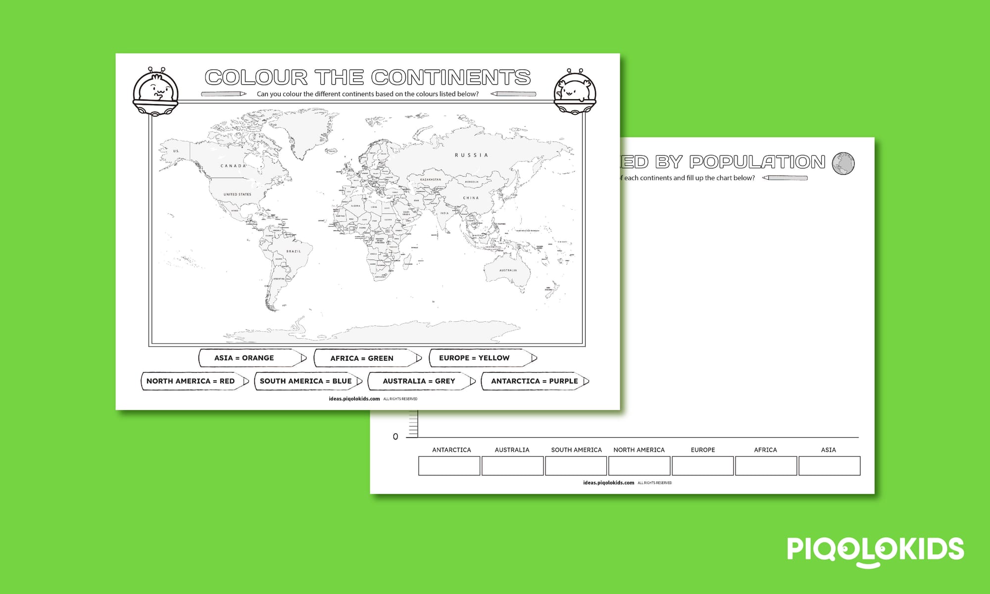 In this creative printable activity, students will colour continents and graph population sizes to improve recognition, data interpretation, and global awareness.