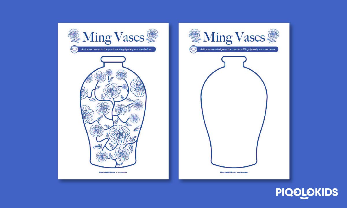 This printable pack consists of 2 printable design challenges. One worksheet consists of a Ming inspired vase with a traditional flower design for colouring. The other worksheet is an empty vase template for your child to create their own Ming inspired designs.