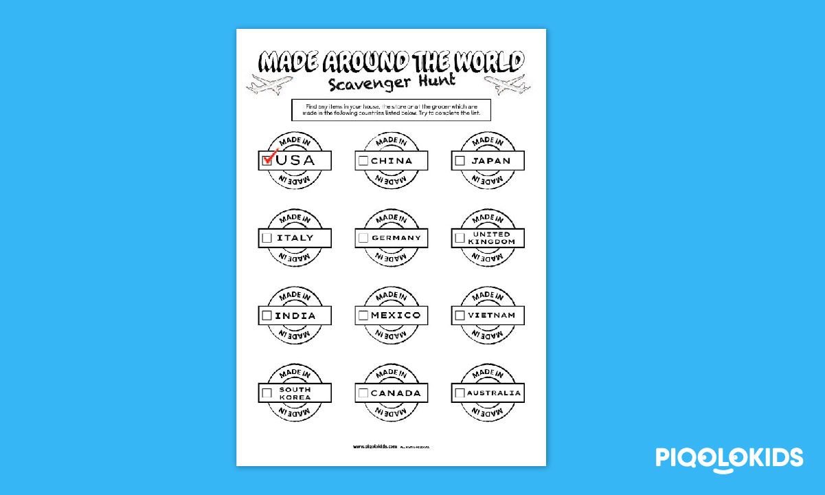 This scavenger hunt printable game is an activity to showcase just how globalised our consumption of food and products are today. Let's see what's made around the world!
