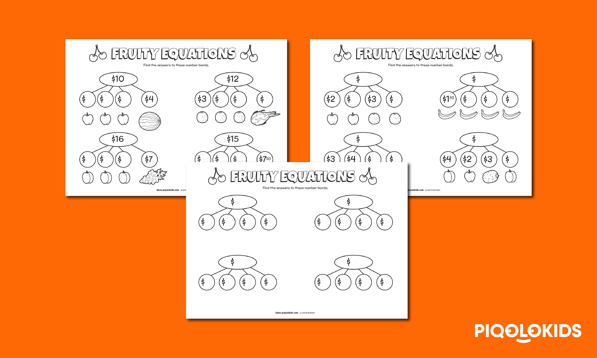 2 Printable Fruit Price Prompted Number Bond sheets (4 questions each)