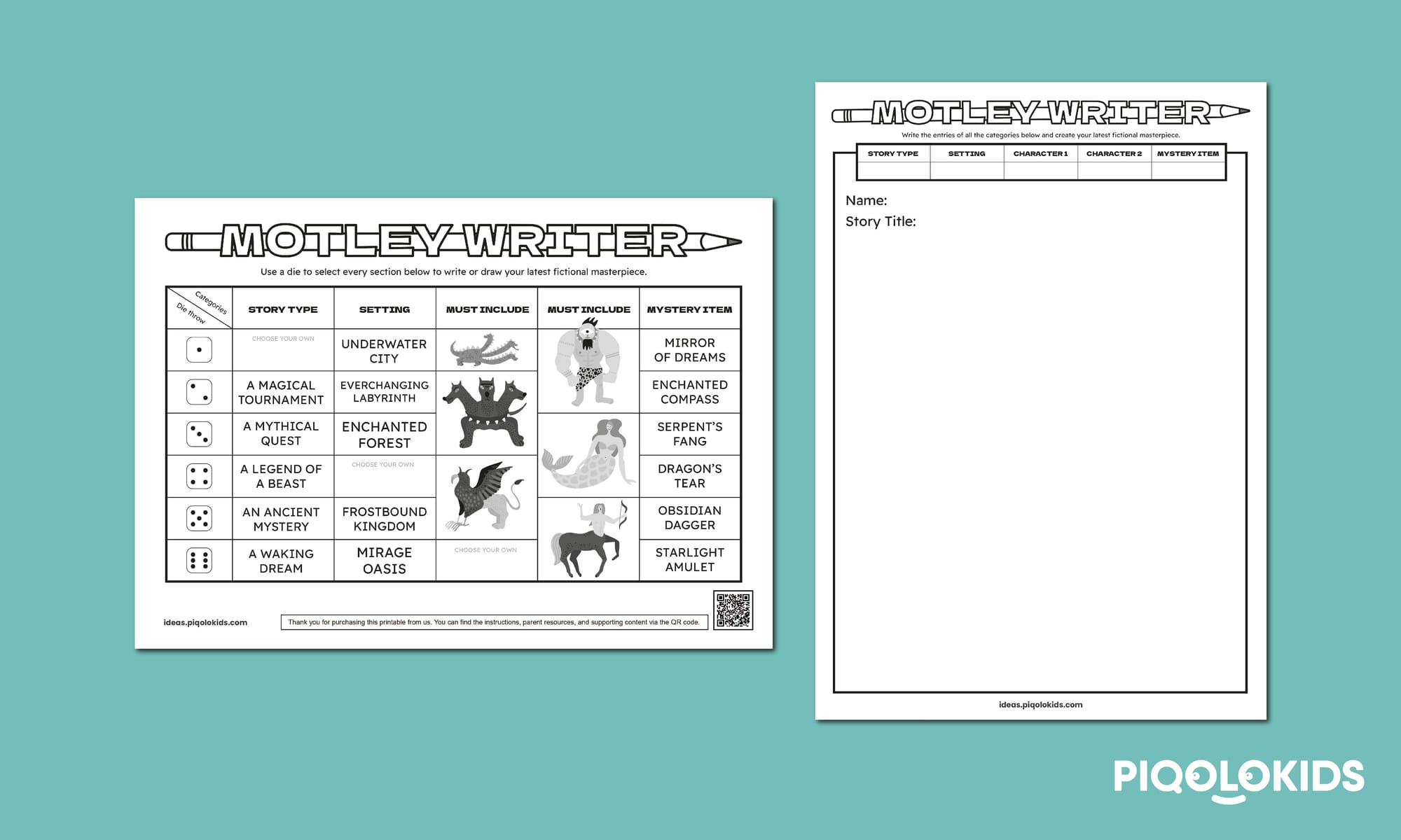 1 Motley Writer "Myth & Legends" Story Element Prompts Sheet