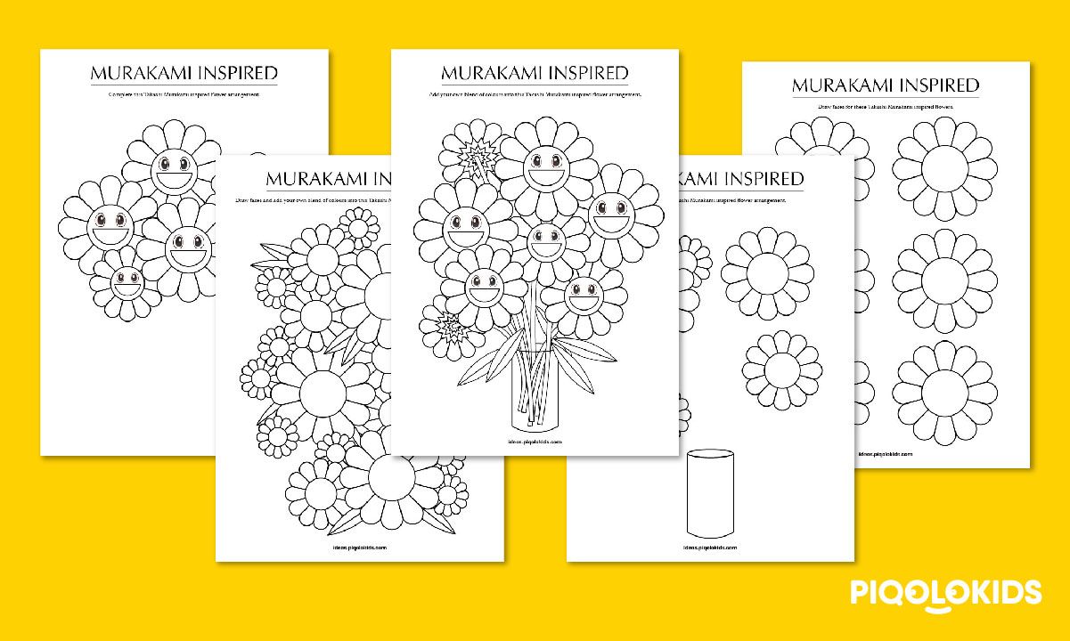 This printable pack consists of 5 printable sheets for your child/student to design Murakami inspired smiling flower arrangements.