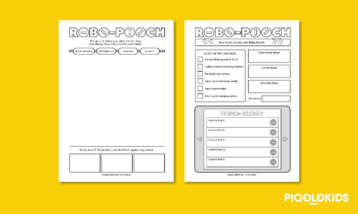 This creative printable design challenge pack consists of 2 printable worksheets for your child to design their robotic dog called "Robo-Pooch". There is a design worksheet for your child to illustrate their robot dog and another worksheet to write down information about their design i.e. name and custom tasks.
