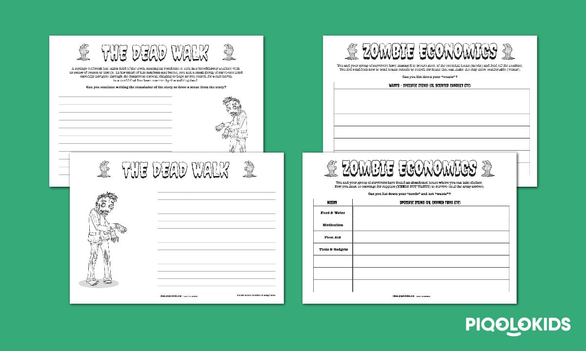 In this creative printable activity, students will assume the role of survivors in a world overrun by zombies. They will reflect on the different scenarios and obstacles that will require them to differentiate between their characters' basic survival necessities and their characters' desires or wishes. By utilising critical thinking, imaginative problem-solving, and storytelling, students will not only understand the idea of distinguishing between needs and wants but also develop essential skills such as teamwork, resilience, and empathy.
