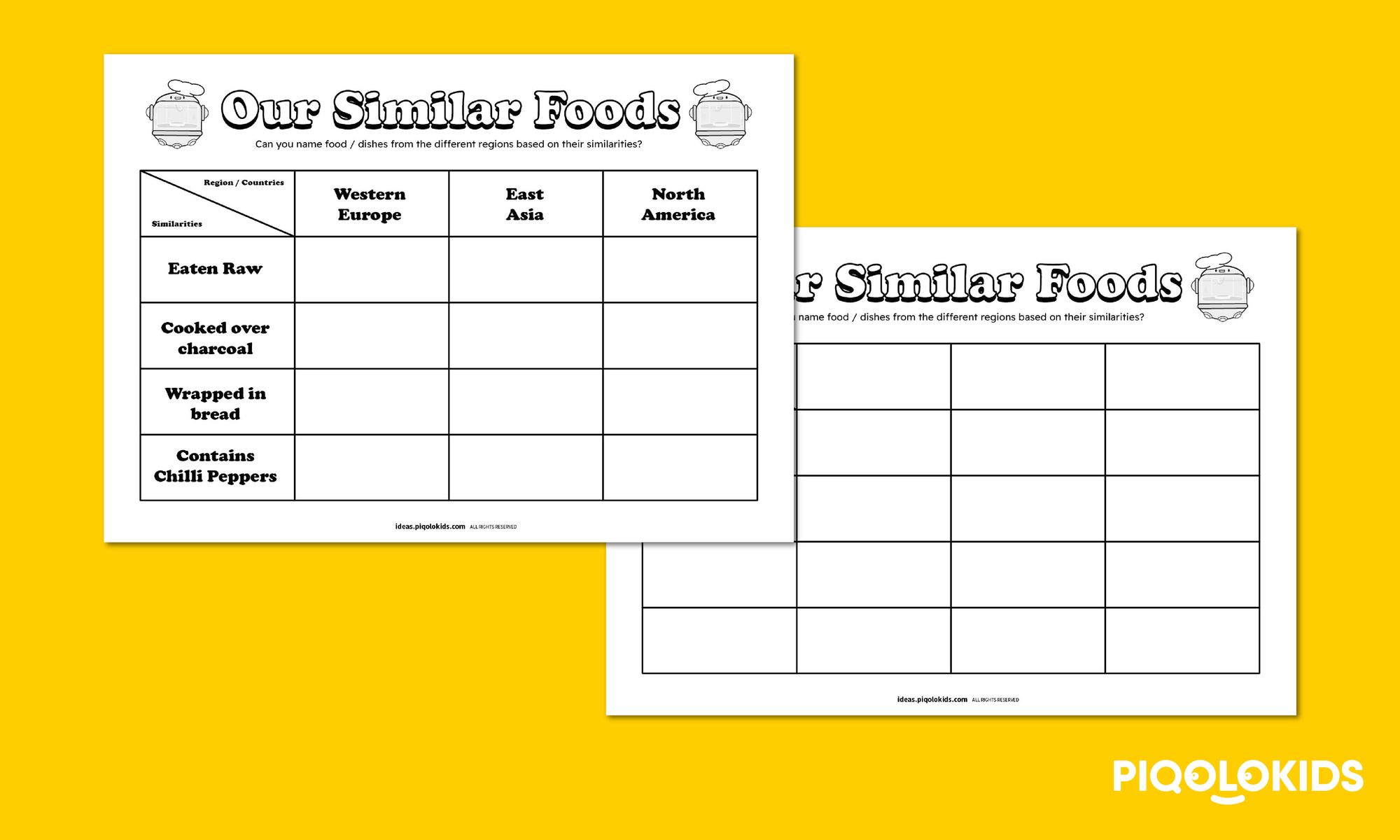 This printable activity pack consists of two creative printable worksheets to record down the ideas of similarities of food in different cultures. Here's what it consists of: