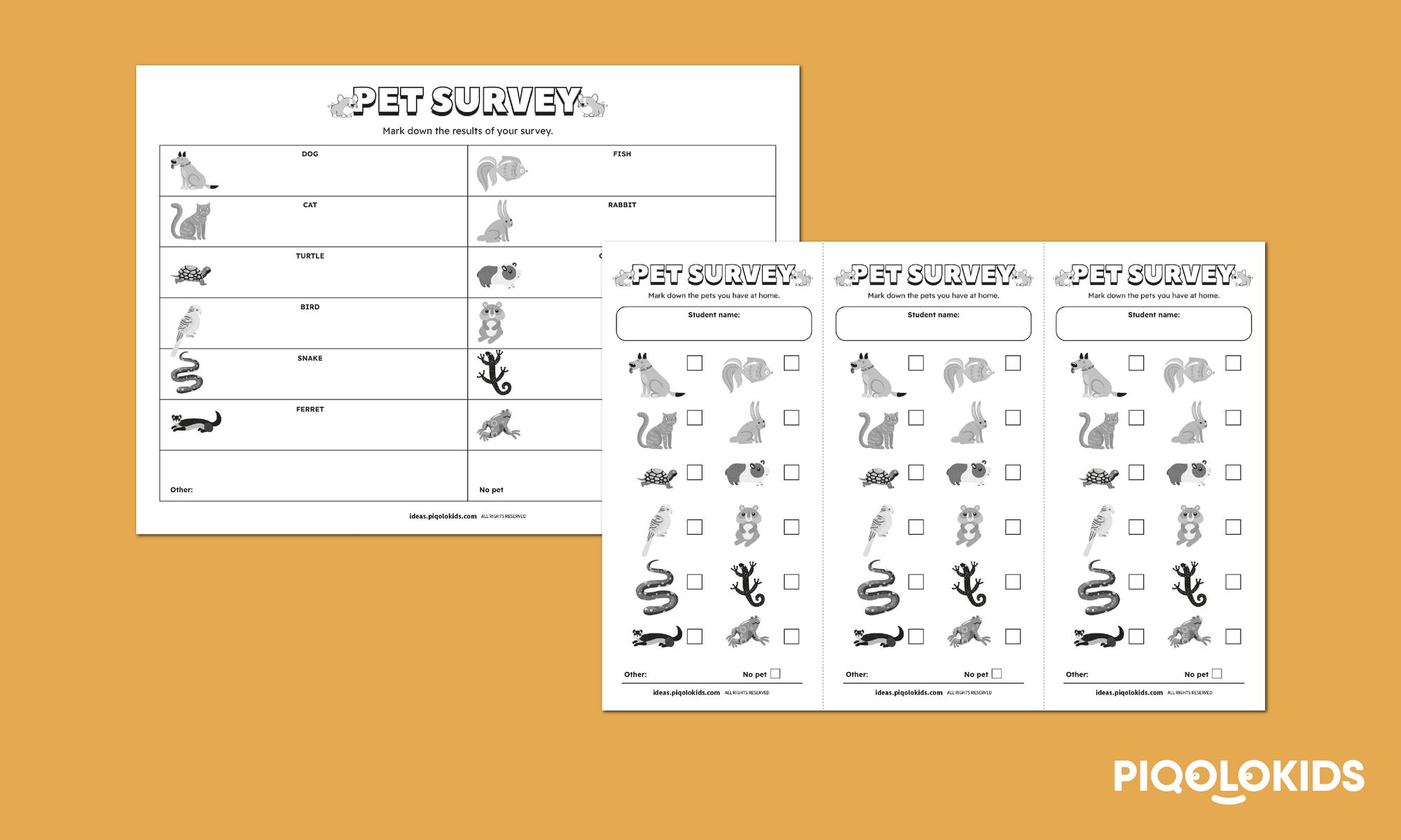 Through a fun in-classroom survey, we aim to empower students to discover the fascinating array of pets that share their classmates' homes. This activity will provide insights into the enriching benefits that the companionship of pets can offer. Let's guide our students through this enlightening activity that combines curiosity, data collection, and an appreciation for our furry, feathered, and scaly friends.