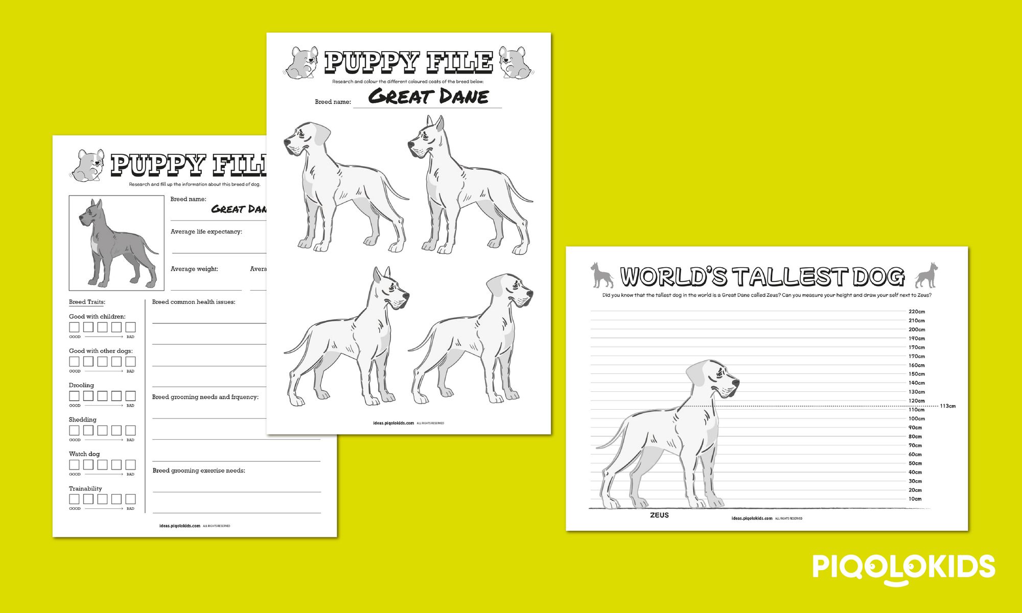 In this activity, your child will research and learn more about researching specific traits (its incredible size) and needs of the Great Dane.