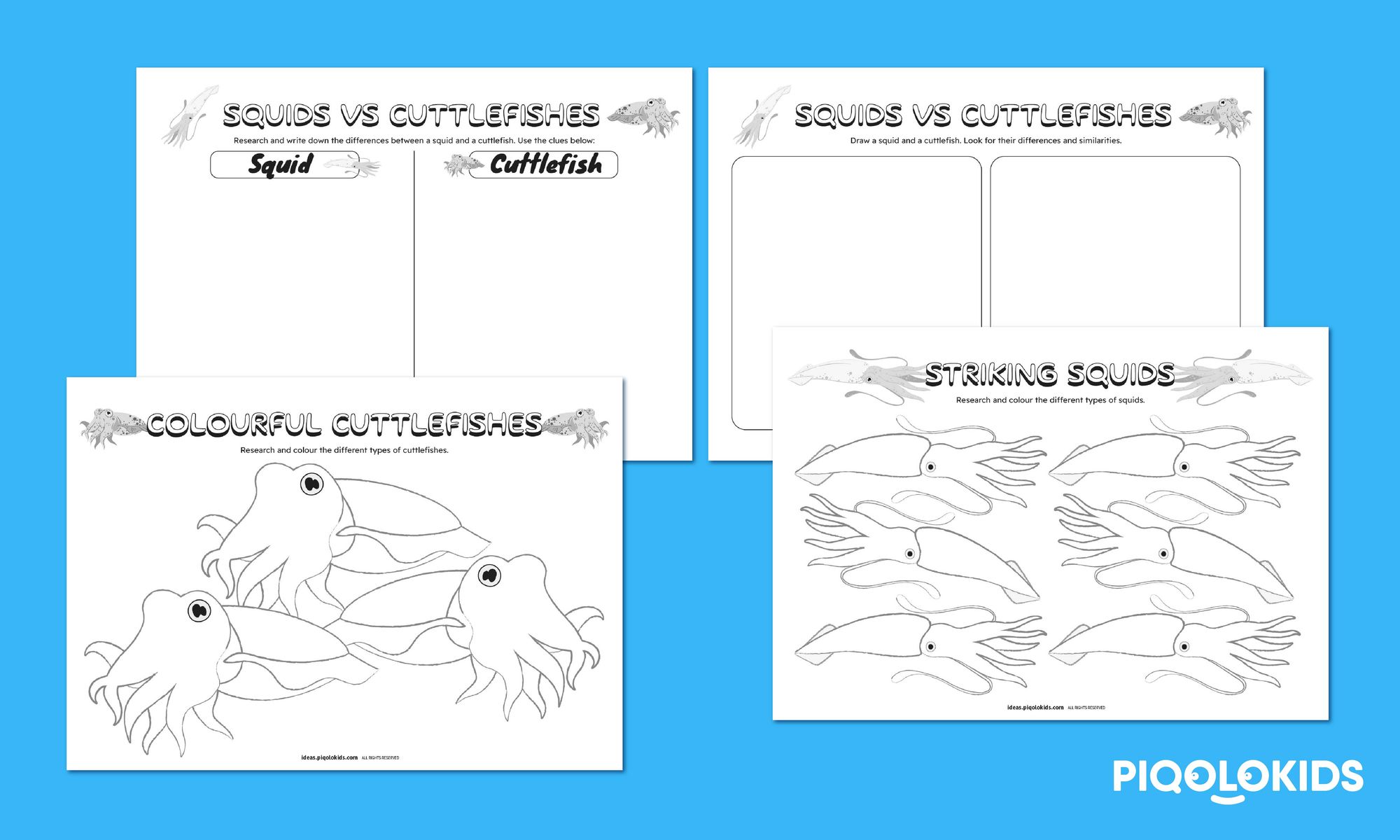 Educational Exploration: The activity provides a creative and interactive way for children to learn about marine life, specifically squids and cuttlefishes. It fosters a love for marine biology and encourages kids to appreciate the diversity of life in the oceans.