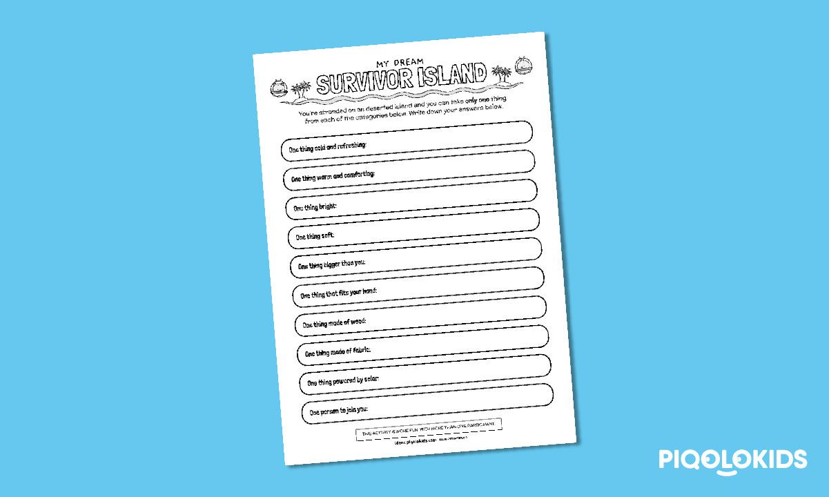 This printable pack consists of 1 printable deserted island survival wish list worksheet. The list contains 10 different categories from which your child/student needs to decide on only one item per category.