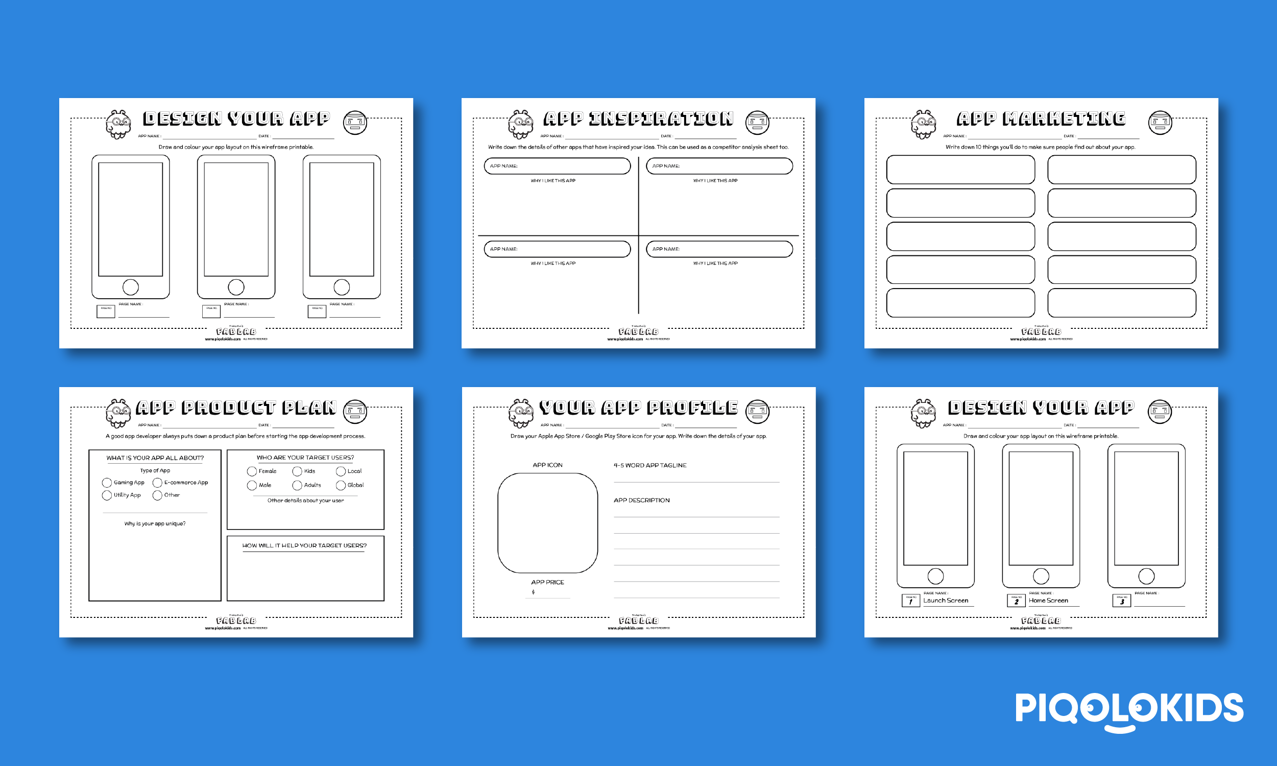 This printable pack consists of 6 printable worksheets with different prompts for your child to plan, design and market a mobile app.
