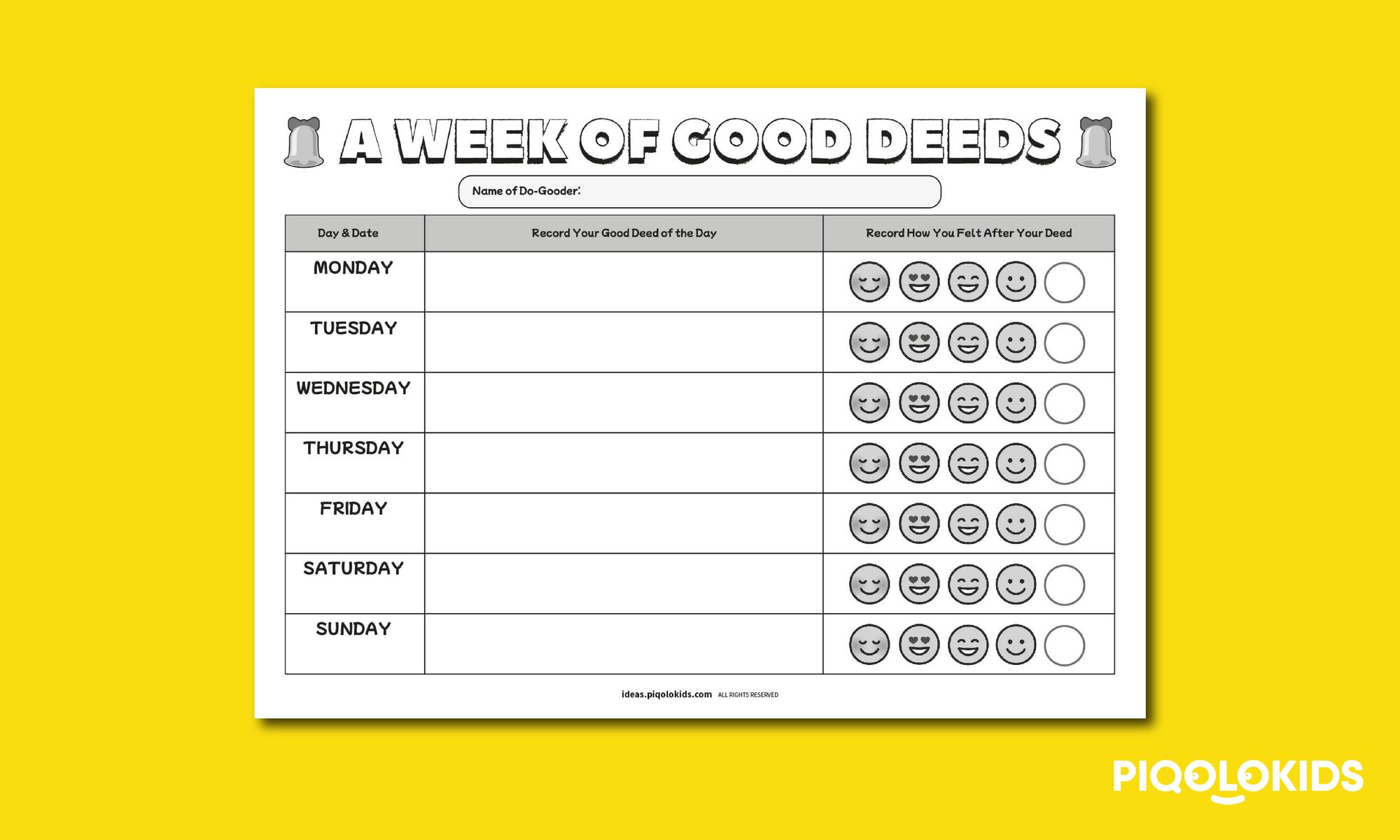 1 Week of Good Deeds Tracking Sheet