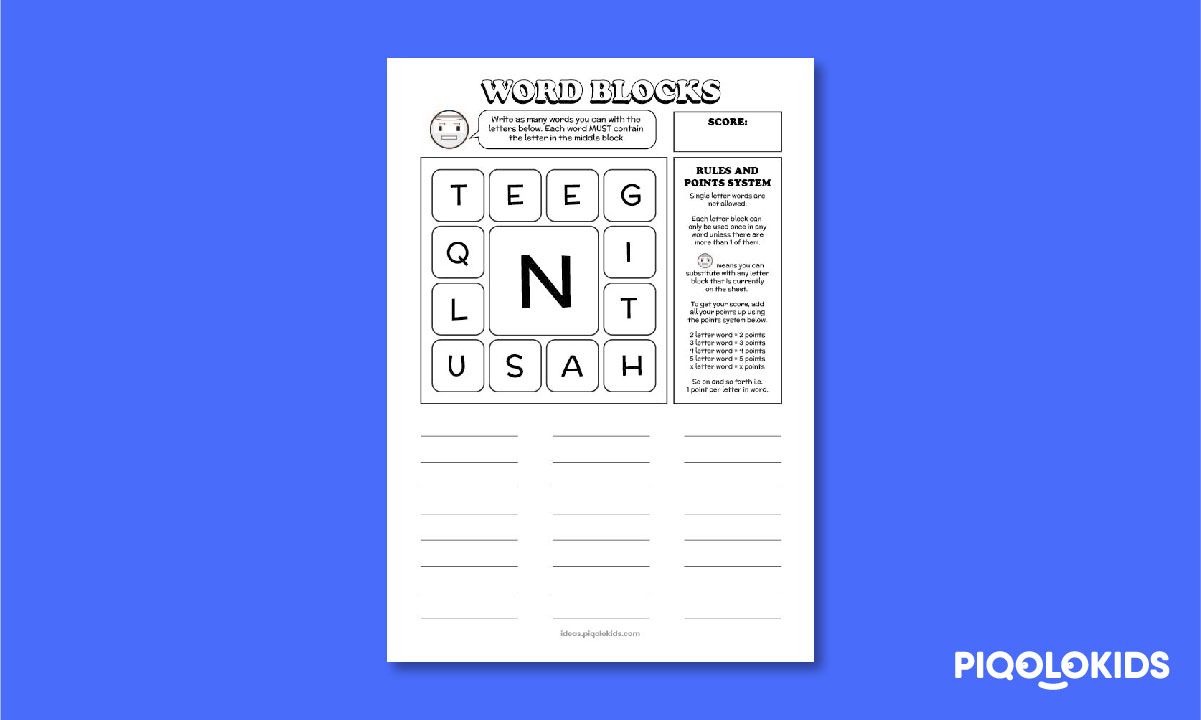Who's up for a game of Word Blocks? It's a fun vocabulary building game for elementary students between 7 to 9 years of age.