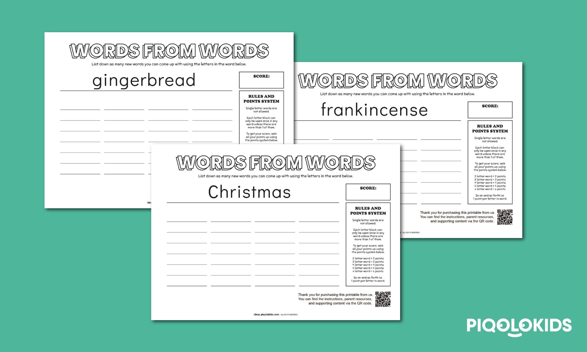 In this activity, your child will list down as many new words from the letters of an existing word in the printable worksheet.
