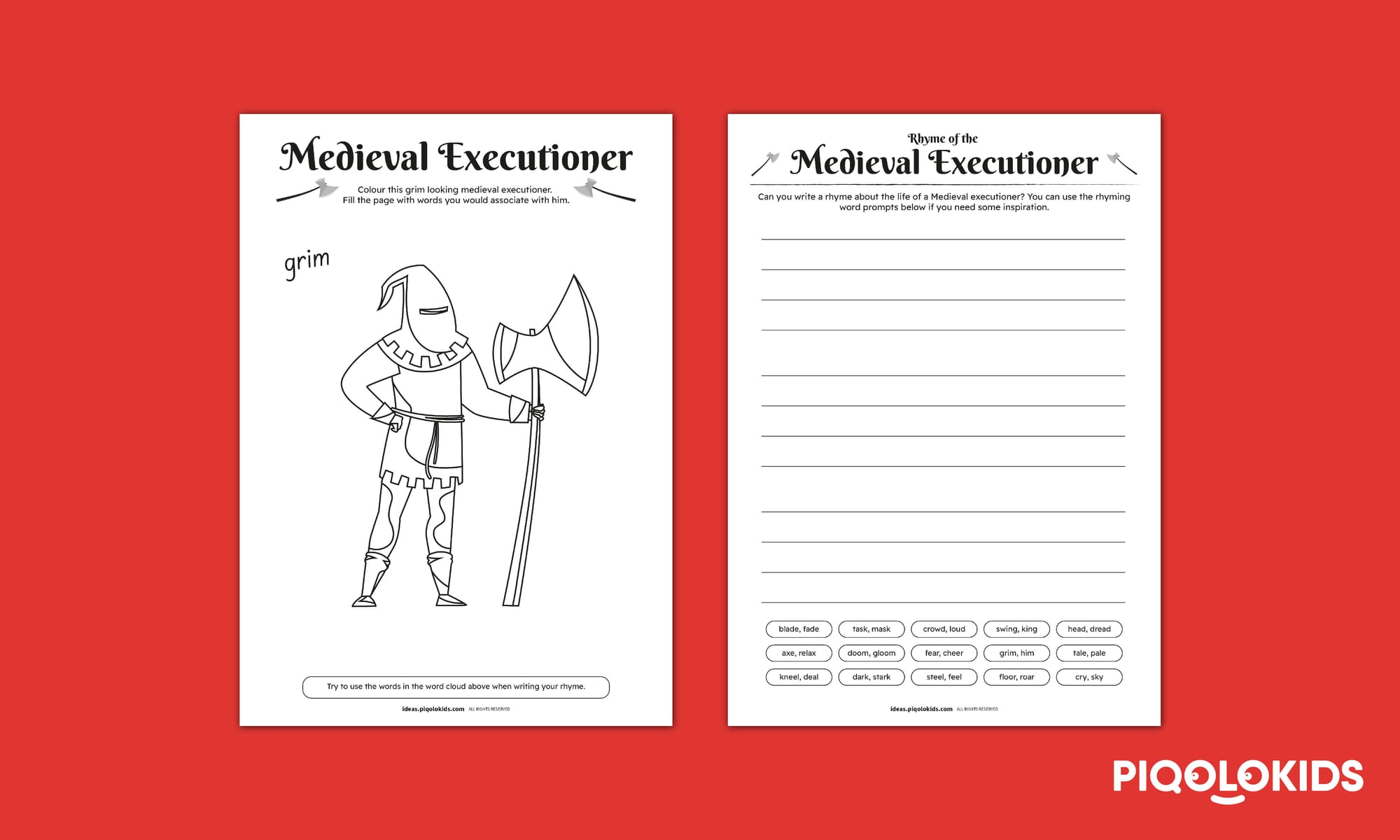 In this creative printable activity, your students will learn about medieval times by writing their own rhymes about a medieval executioner, combining history, poetry, and Halloween fun.