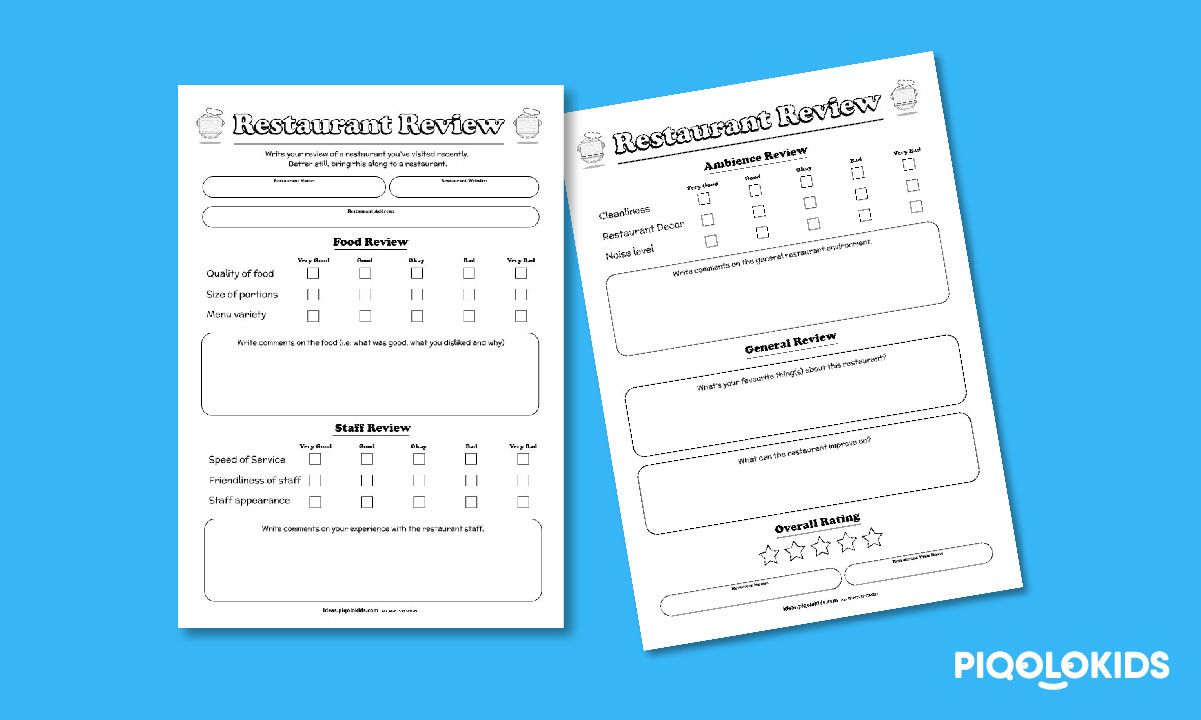 In this activity, your child will learn about how restaurants are reviewed and will have a chance to write restaurant reviews of their own.